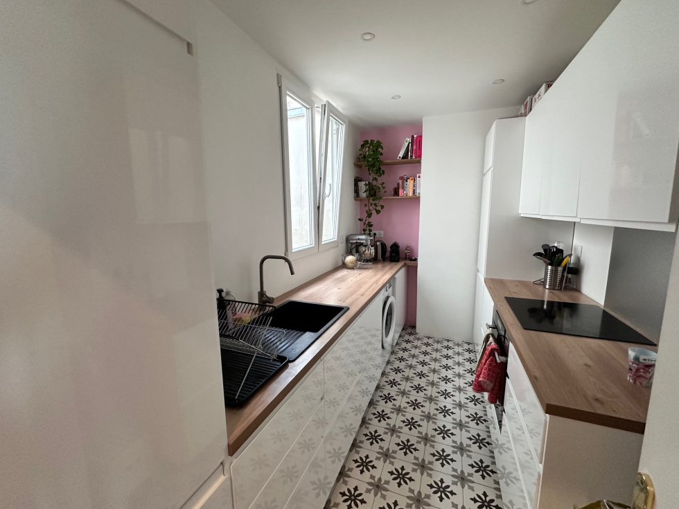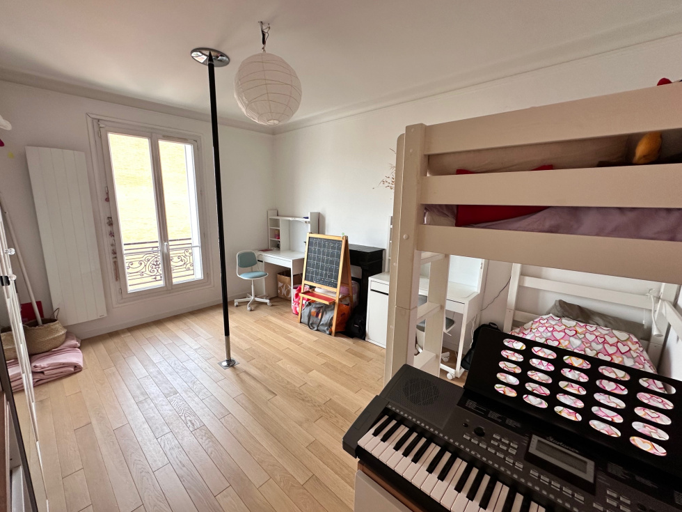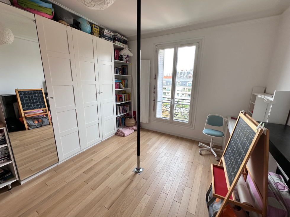 En plein Centre Ville, Au pied du RER et des commerces, Dans un immeuble ancien, Au 5ème et dernier étage avec ascenseur, 3/4 pièces de 81 m² avec séjour parqueté en exposition Sud sans vis à vis et accès au balcon, cuisine indépendante équipée et aménagée, 2 belles chambres parquetées au calme sur cour avec chacune une salle d'eau privative, cave en sous-sol. Emplacement de 1er choix, Calme et lumineux.