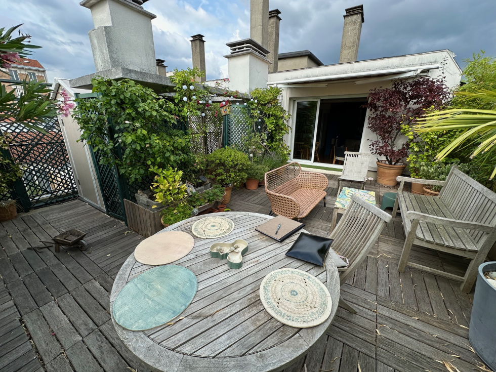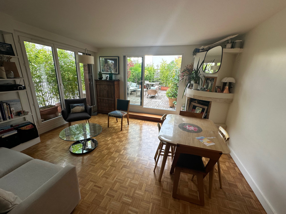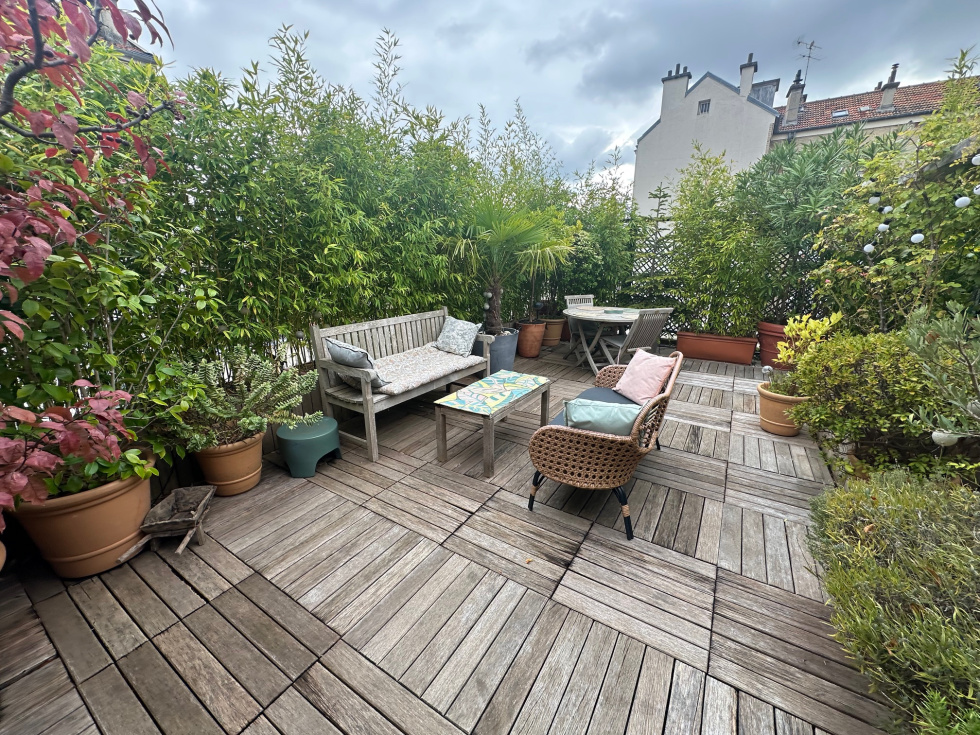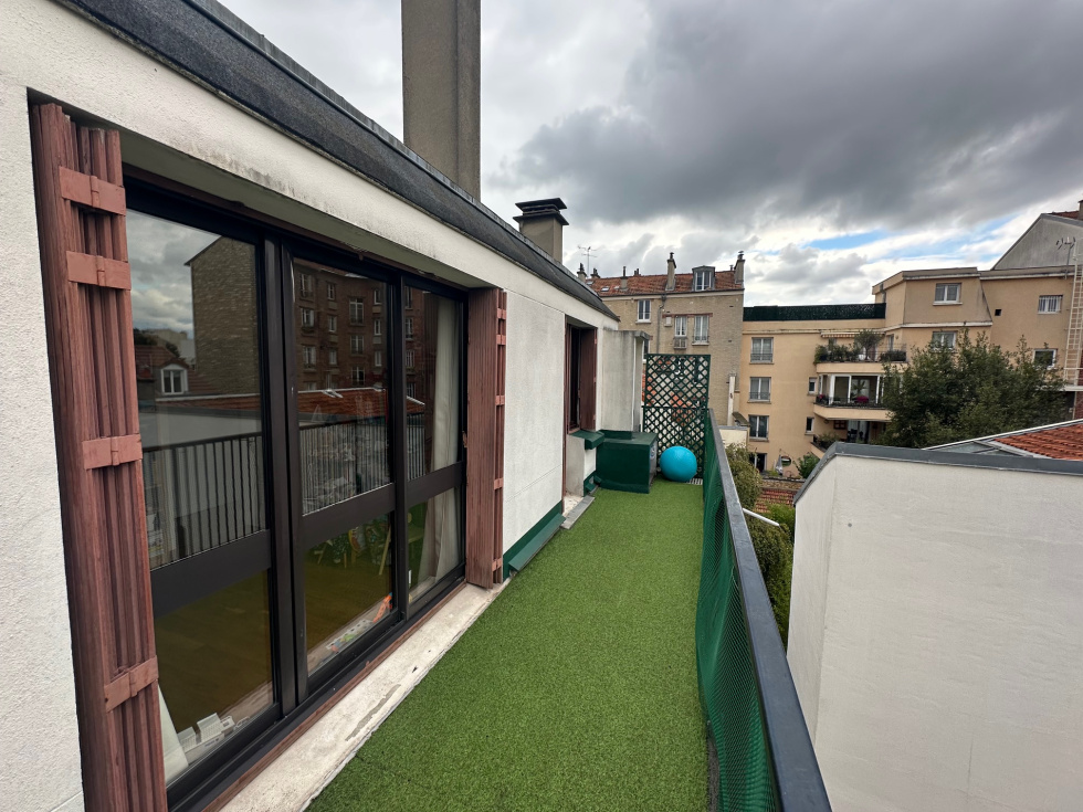 VINCENNES PROCHE CENTRE, Au dernier étage avec ascenseur d'un immeuble en pierre de taille, 4 pièces de 70 m² avec 73 m² d'espaces extérieurs, Séjour en exposition Ouest donnant sur terrasse aménagée plein ciel de 55 m², Cuisine aménagée et équipée en exposition Sud, 3 chambres parquetées donnant sur balcon, salle de bain carrelée, cave et parking en sous-sol. Bien rare sur notre secteur.