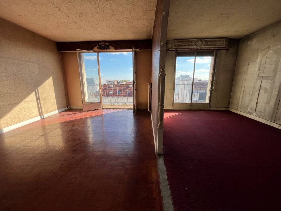 VINCENNES CENTRE VILLE Au 7ème et avant dernier étage d'un immeuble recent des années 1970, appartement 5/6 pièces de 124m² avec 5m² de balcon en exposition Sud, appartement traversant à RENOVER.