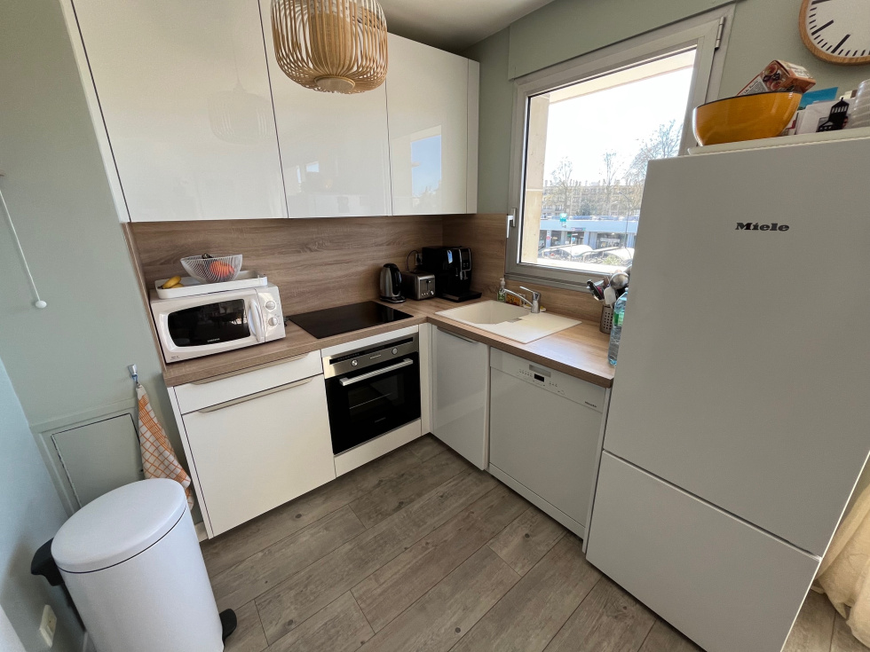 Aux pieds du RER A FONTENAY SOUS BOIS, au 2ème étage avec ascenseur d'un bel immeuble récent en pierre de taille. APPARTEMENT 2 pièces de 44.60m² loi Carrez avec un balcon de 9m² en exposition Sud, composé de: entrée avec placard/penderie, dressing, wc séparés avec prise mahcine, séjour avec cuisine us de 24m² en expoosition Sud donnant accès au balcon, chambre avec accès également au balcon et une salle de bains privative. Au sous-sol une cave. Et la possibilité d'acquerir en sus du prix un box pour 20 000 Euros. UN VRAI COUP DE COEUR POUR CET APPARTEMENT DE QUALITE AUX PIEDS DES COMMERCES, DU BOIS ET DU RER A.