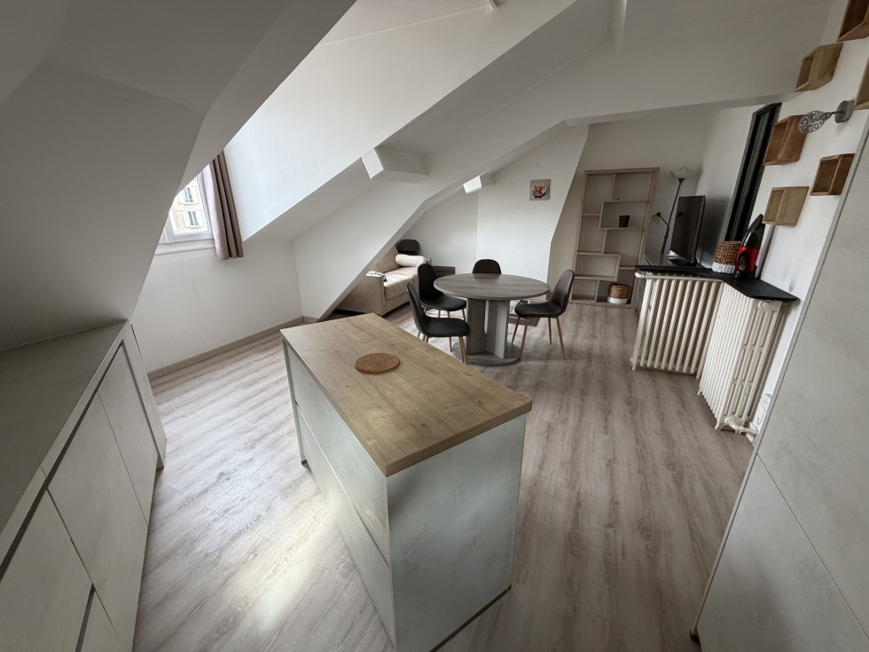 A deux pas du RER, du métro et du centre, Dans un immeuble ancien au sein d'une copropriété charmante, 2 pièces de 36 m² Carrez et 58 m² au sol, au 3ème et dernier étage, Séjour lumineux avec cuisine ouverte, belle chambre parquetée, salle de bain carrelée avec baignoire.